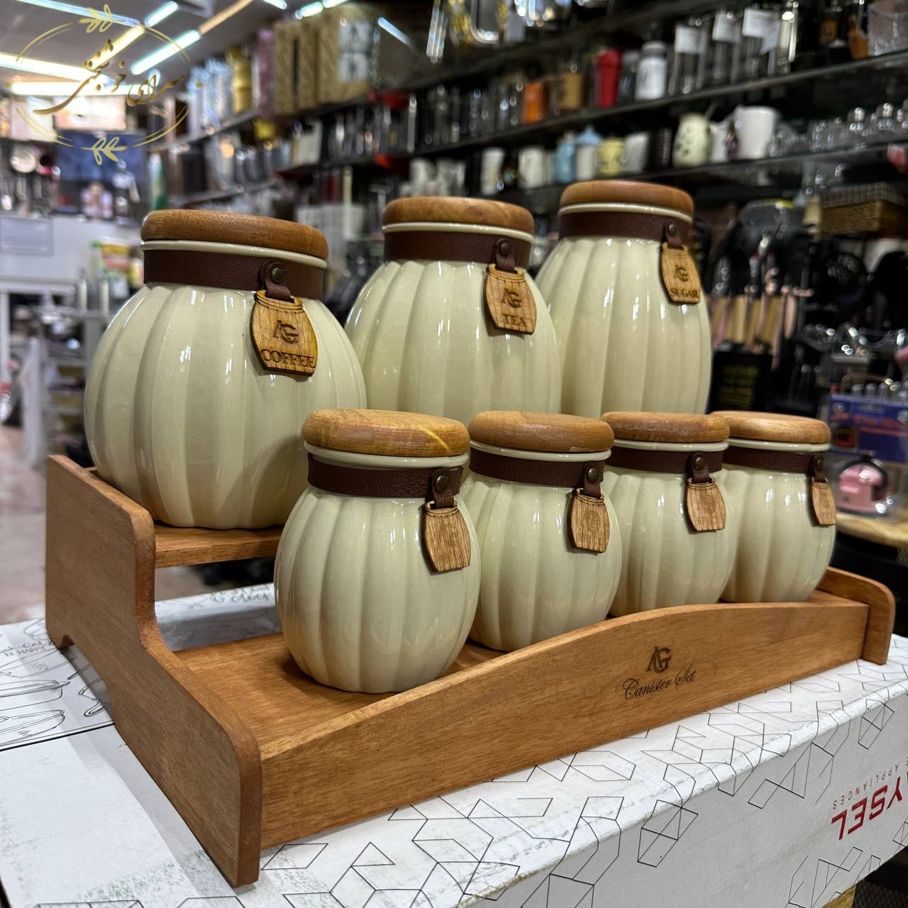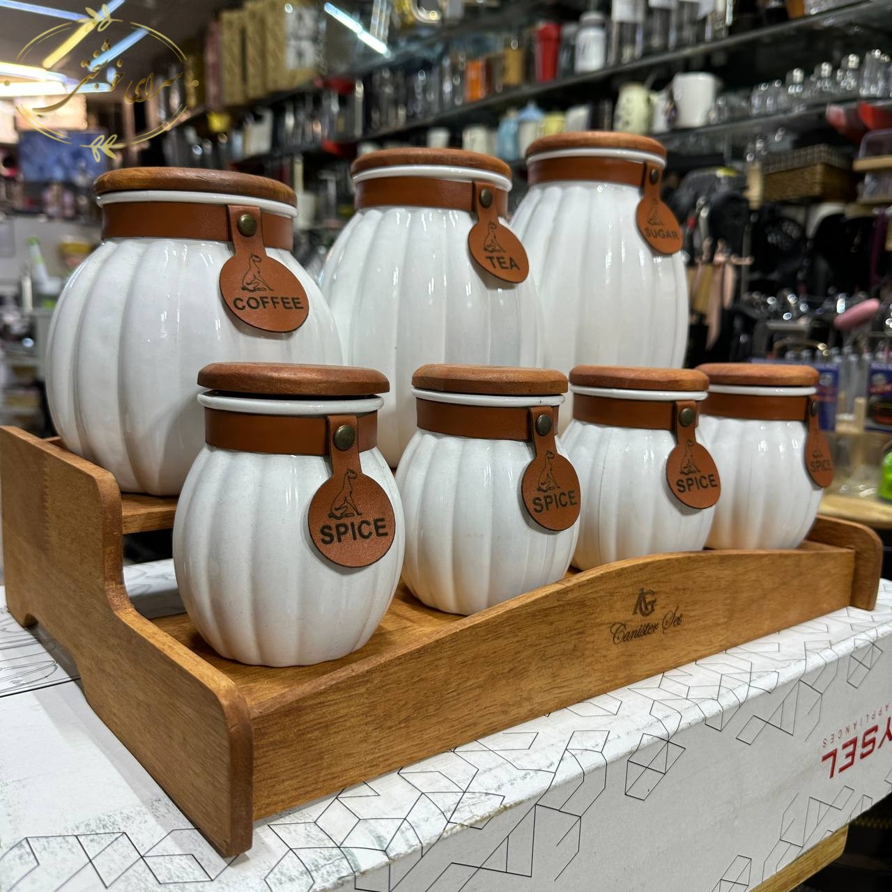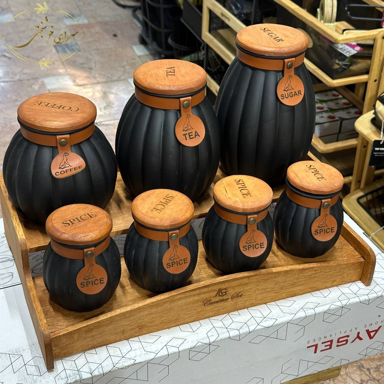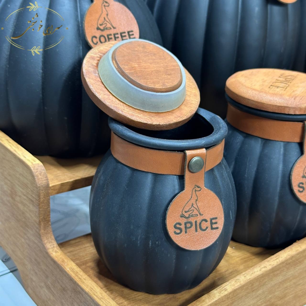 این ست برای نگهداری انواع ادویهجات، چای، قهوه و شکر بسیار مناسب است و مانع از نفوذ رطوبت به مواد داخل ظرف میشود. پایهی چوبی نیز به حفظ نظم و زیبایی روی کابینت یا اپن آشپزخانه کمک میکند.
