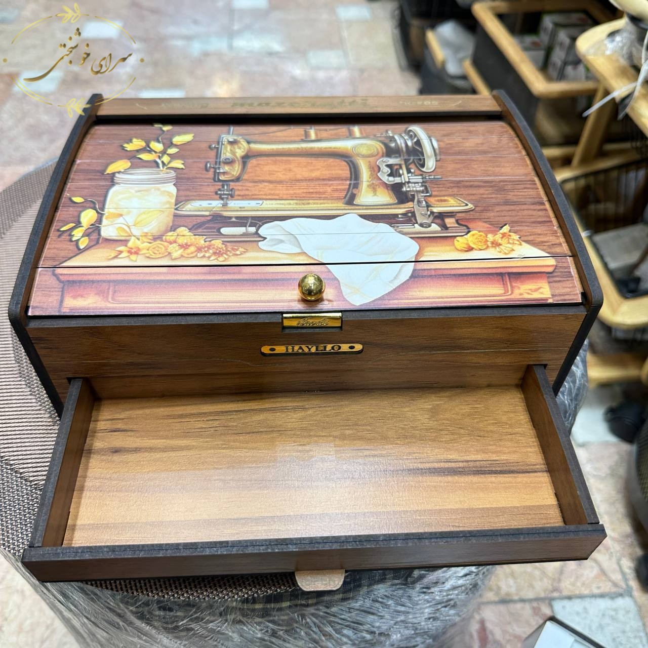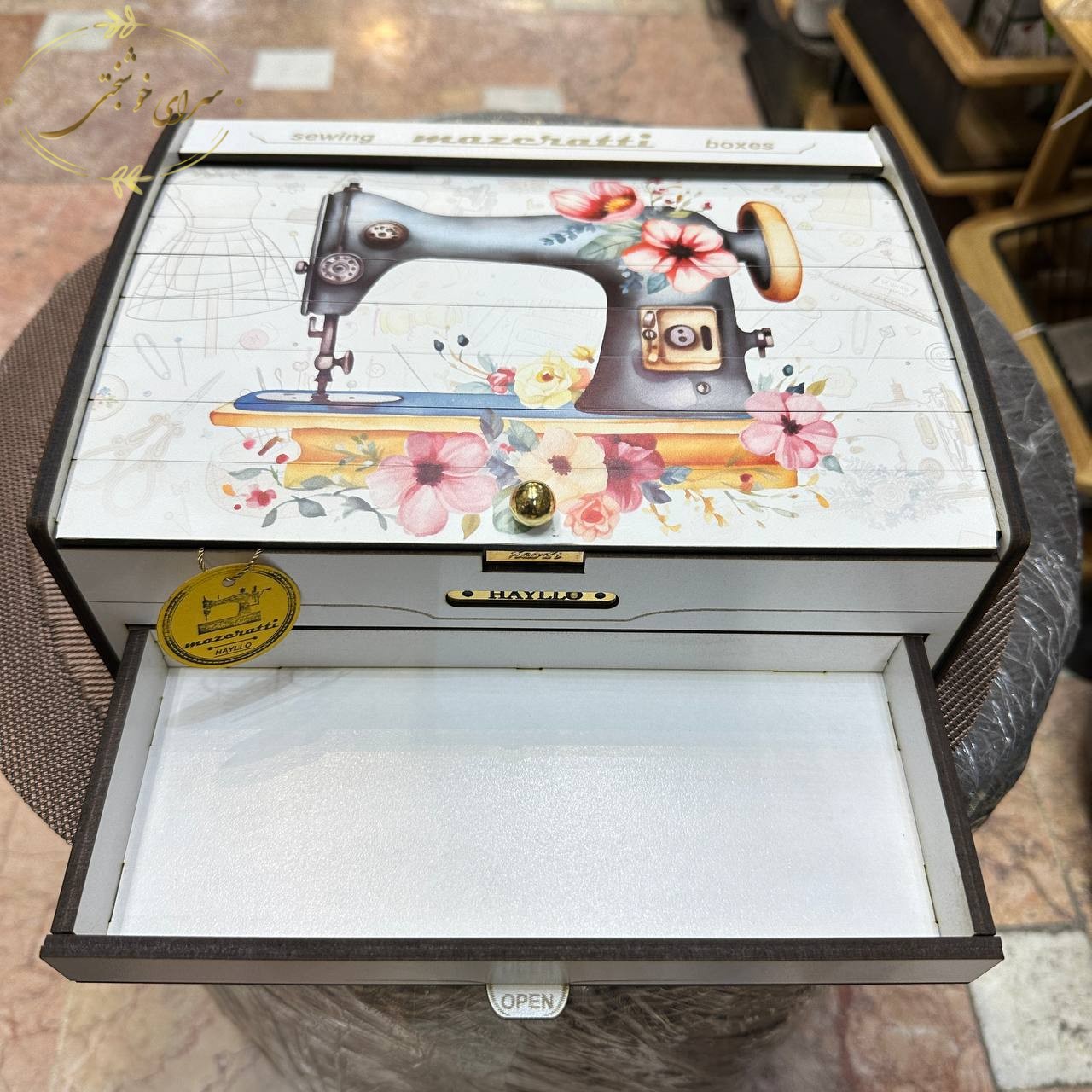جعبه نخ سوزن و خیاطی چوبی هایلو مدل مازراتی کشو دار